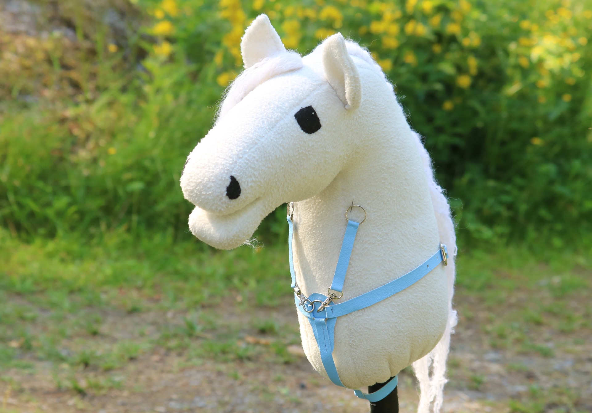 Measurements about: around the neck 55-70 cm (adjustable), down strap 17 cm, martingale parts 10 cm. The martingale parts have keyrings, so they're easy to slide to reins that are not detachable from the bit.