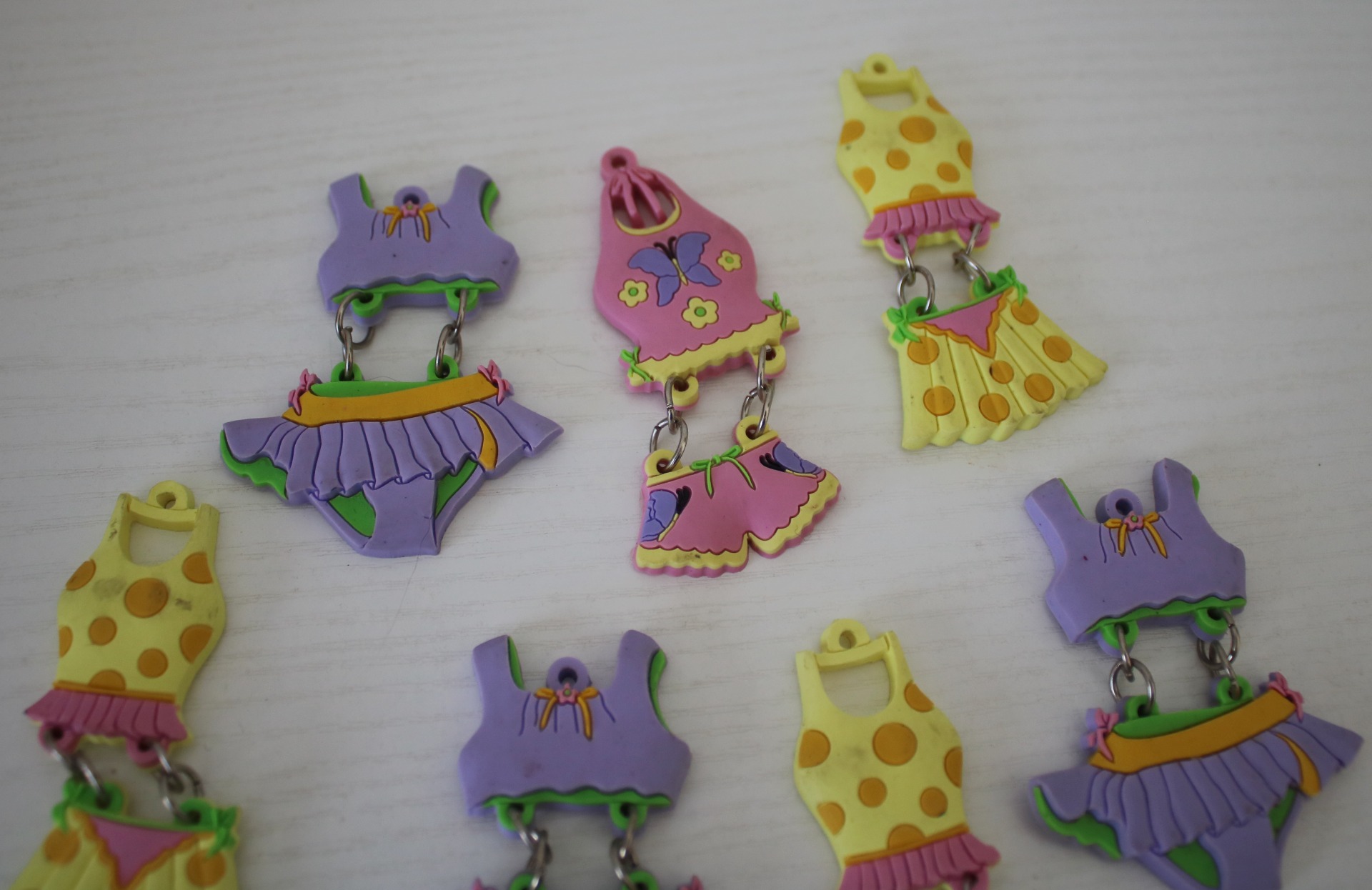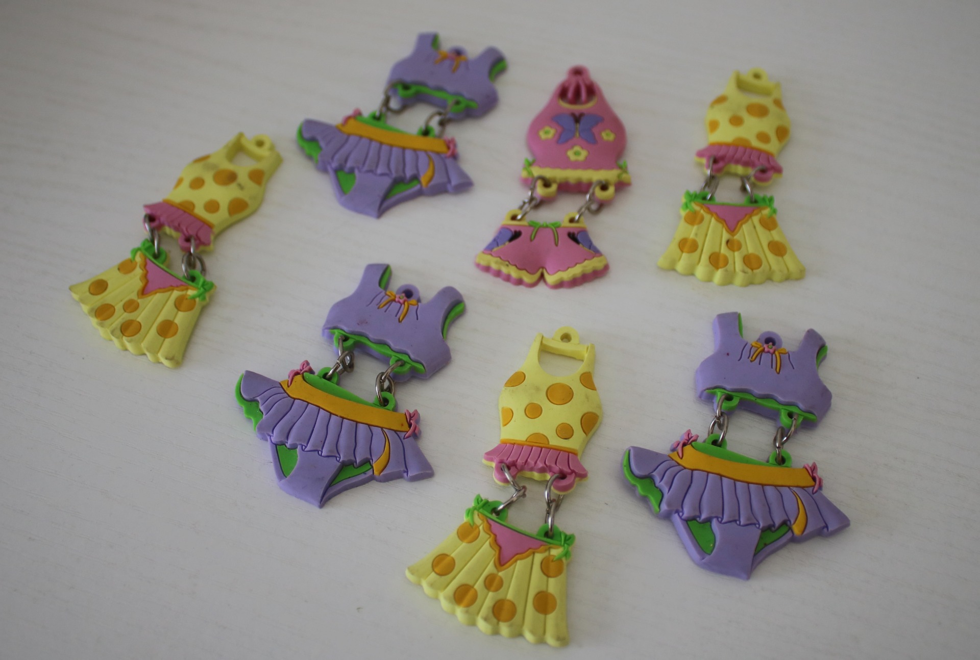 Uimapukuteemaiset "riipukset" esimerkiksi avaimenperiin tai muuhun askarteluun.