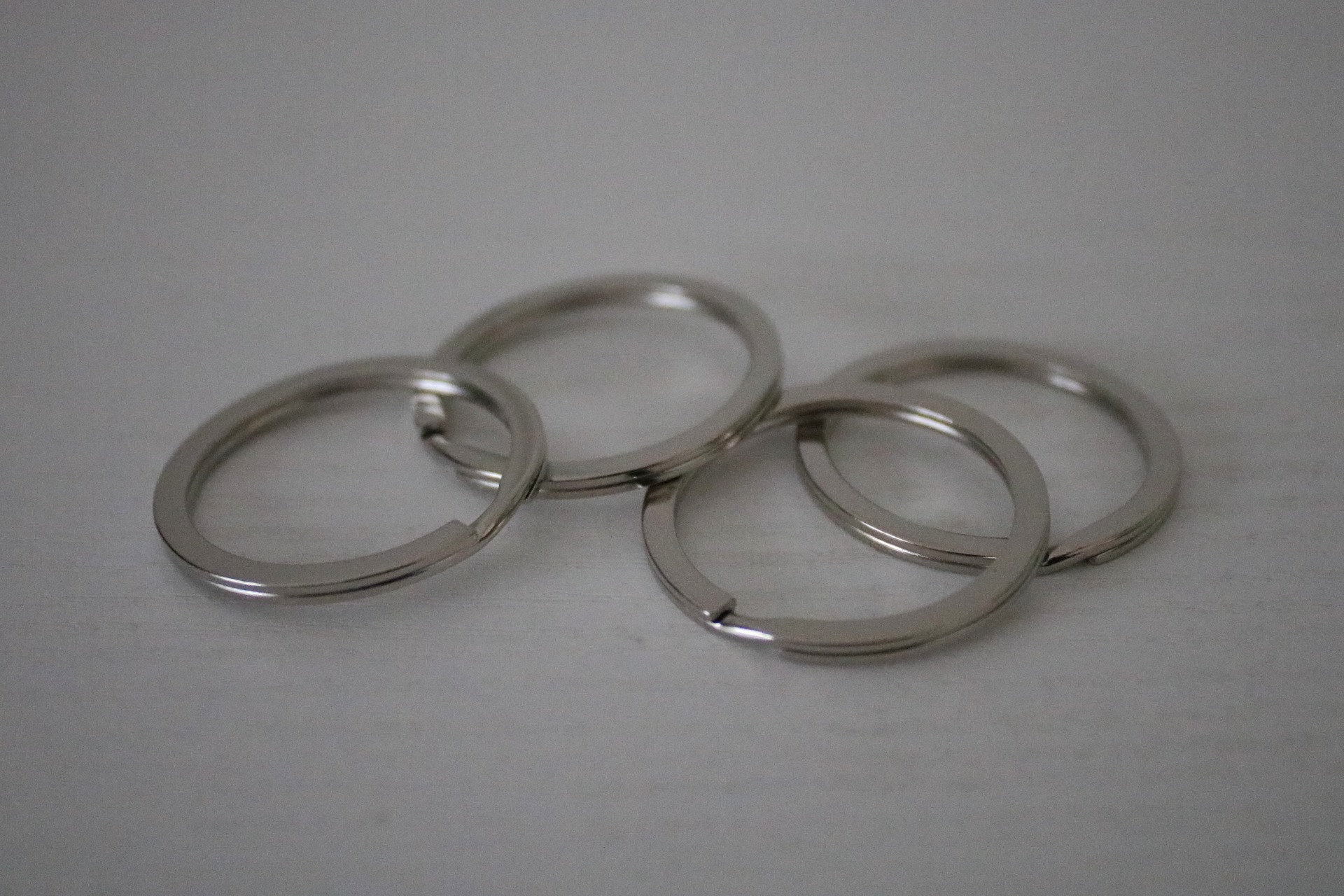 Metallinen pyöreä avainrengas, eri kokoja. 30 mm renkaat ovat litteitä.