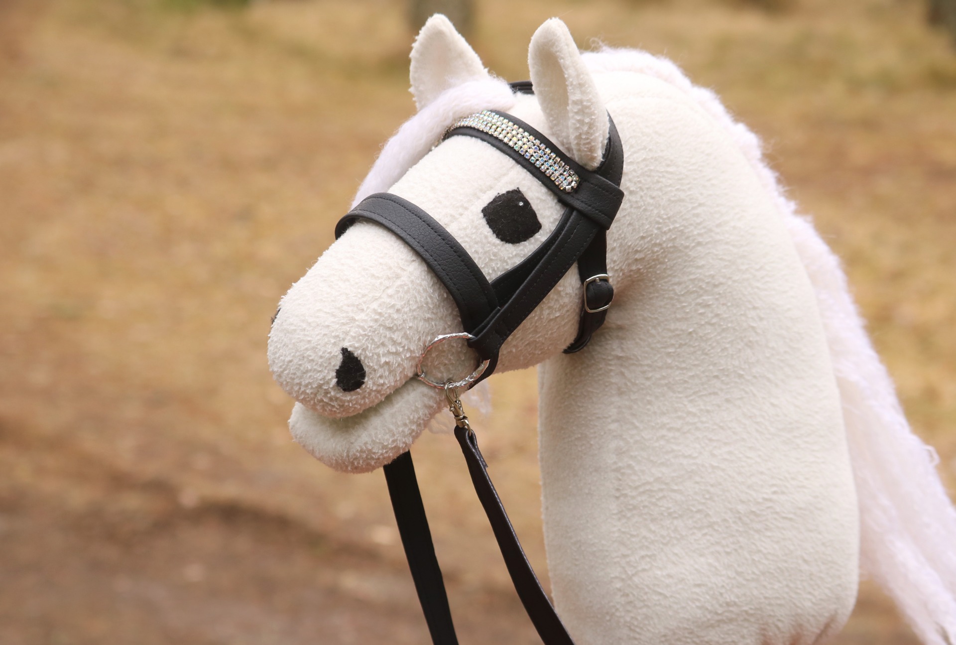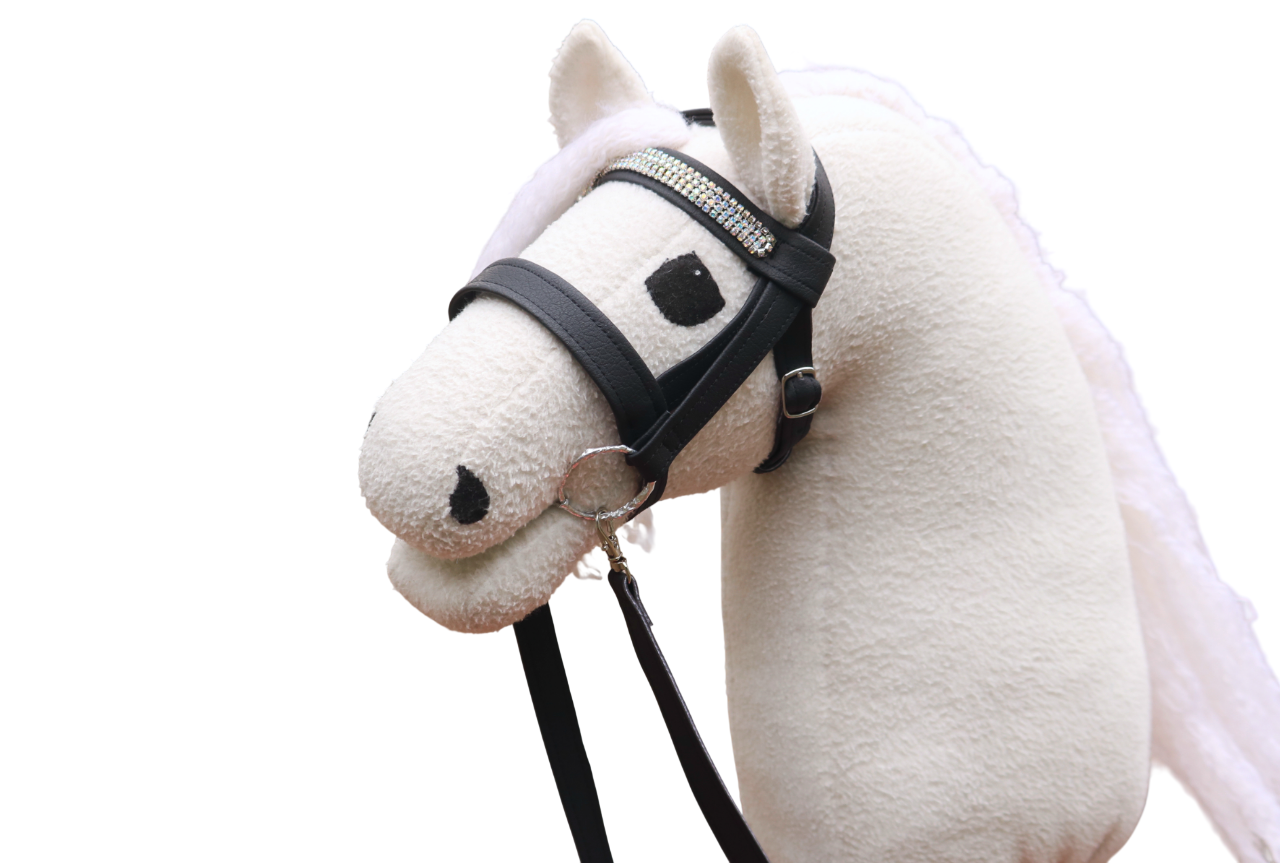 Tikatut englantilaiset suitset, eli suitset yhdellä turpahihnalla. Neljä riviä timanttiketjua. Kaksipuoleisesta, tikatusta keinonahasta. Irrotettavat ohjat ja lenkit solkien hihnoille.