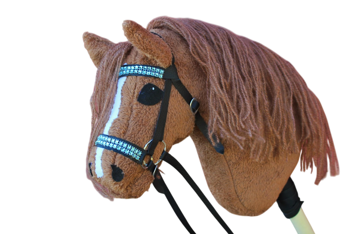 Hannoverilaiset suitset, joissa on yksi turpahihna kuolaimen edessä. Keinonahasta strassikoristeilla. Kaksi riviä strasseja otsapannassa ja turpahihnassa. Mikäli haluat strassit pelkästään toiseen hihnaan, jätä siitä maininta tilauksen yhteydessä kassalla.
