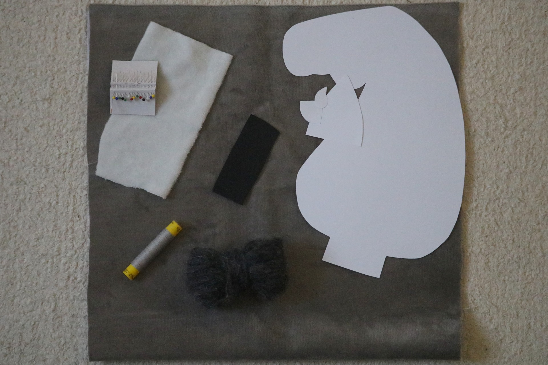 -Mustaa ompelulankaa tai liima (kuumaliima/pikaliima) silmien ja sierainten kiinnittämiseen. Voit myös käyttää paketin mukana tullutta kankaan väristä ompelulankaa.