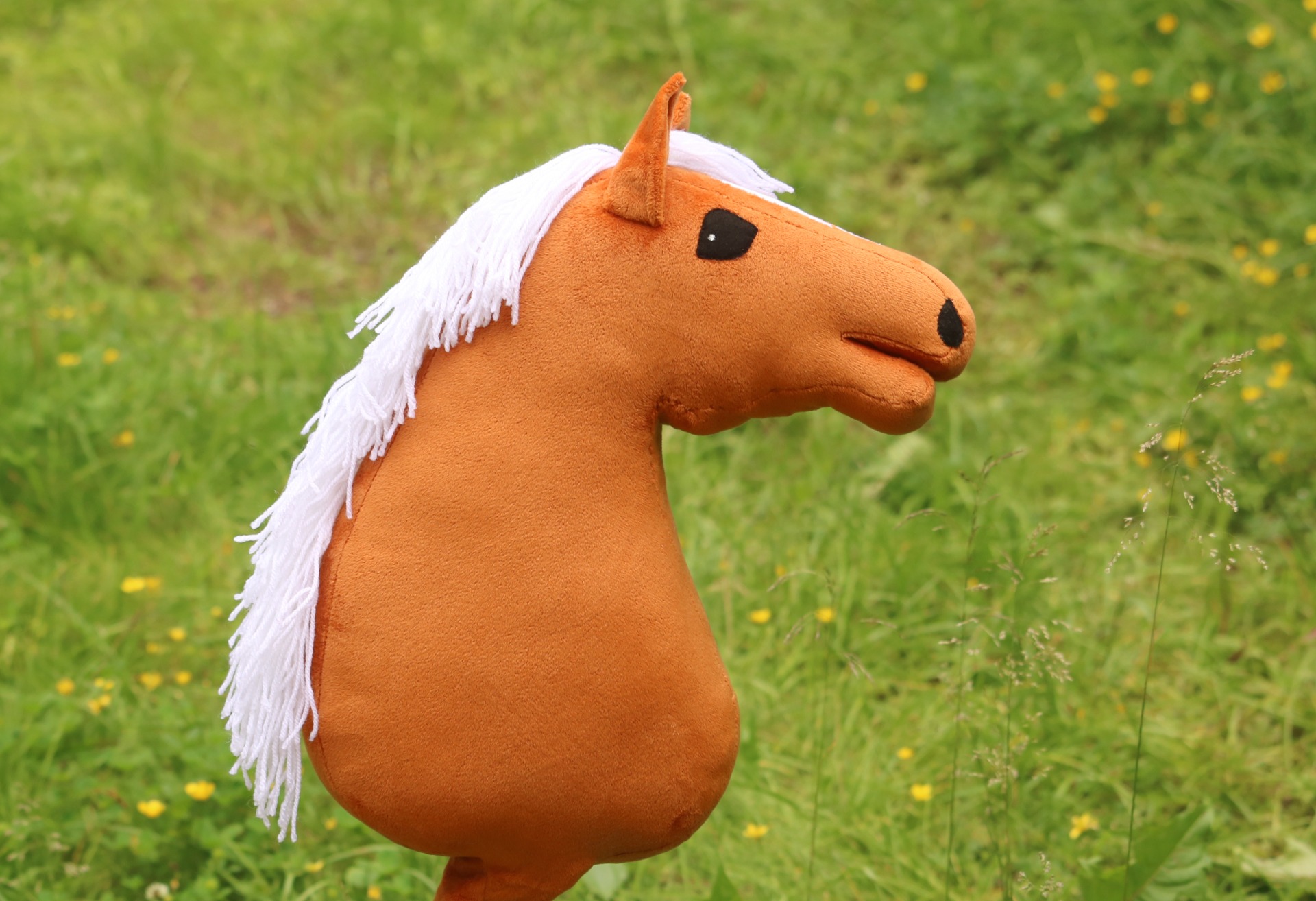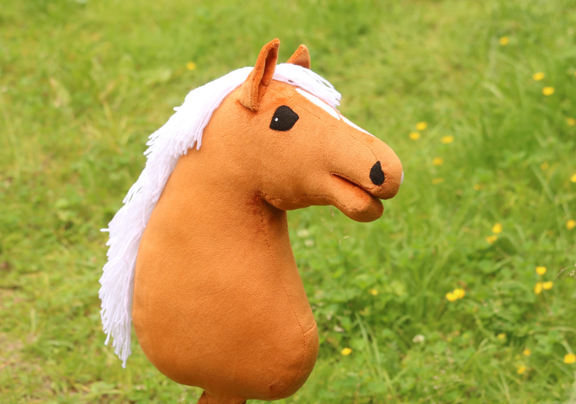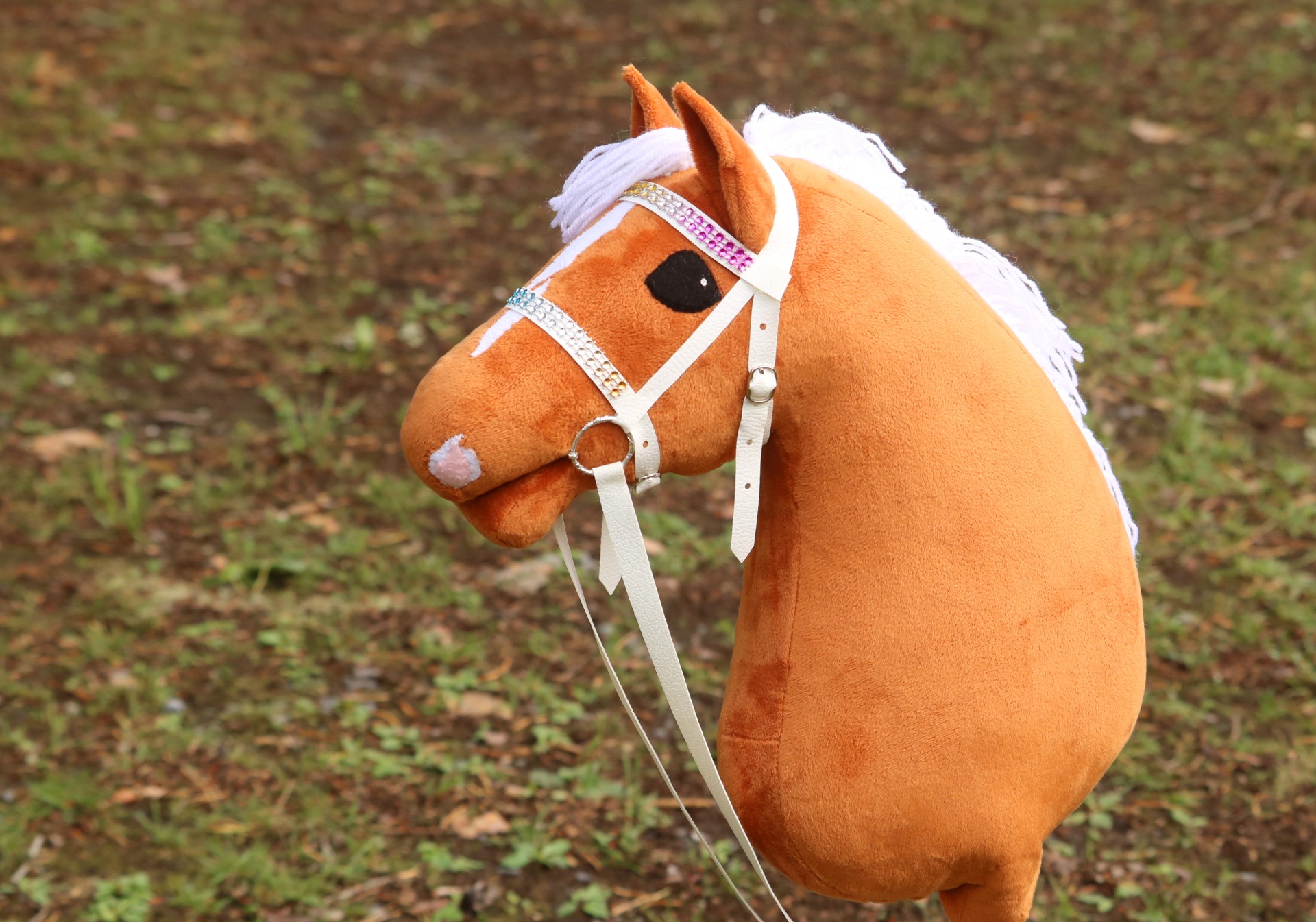 Voit ostaa keppihevosen kuvassa näkyvien valkoisten englantilaisten suitsien kanssa, tai ilman niitä.