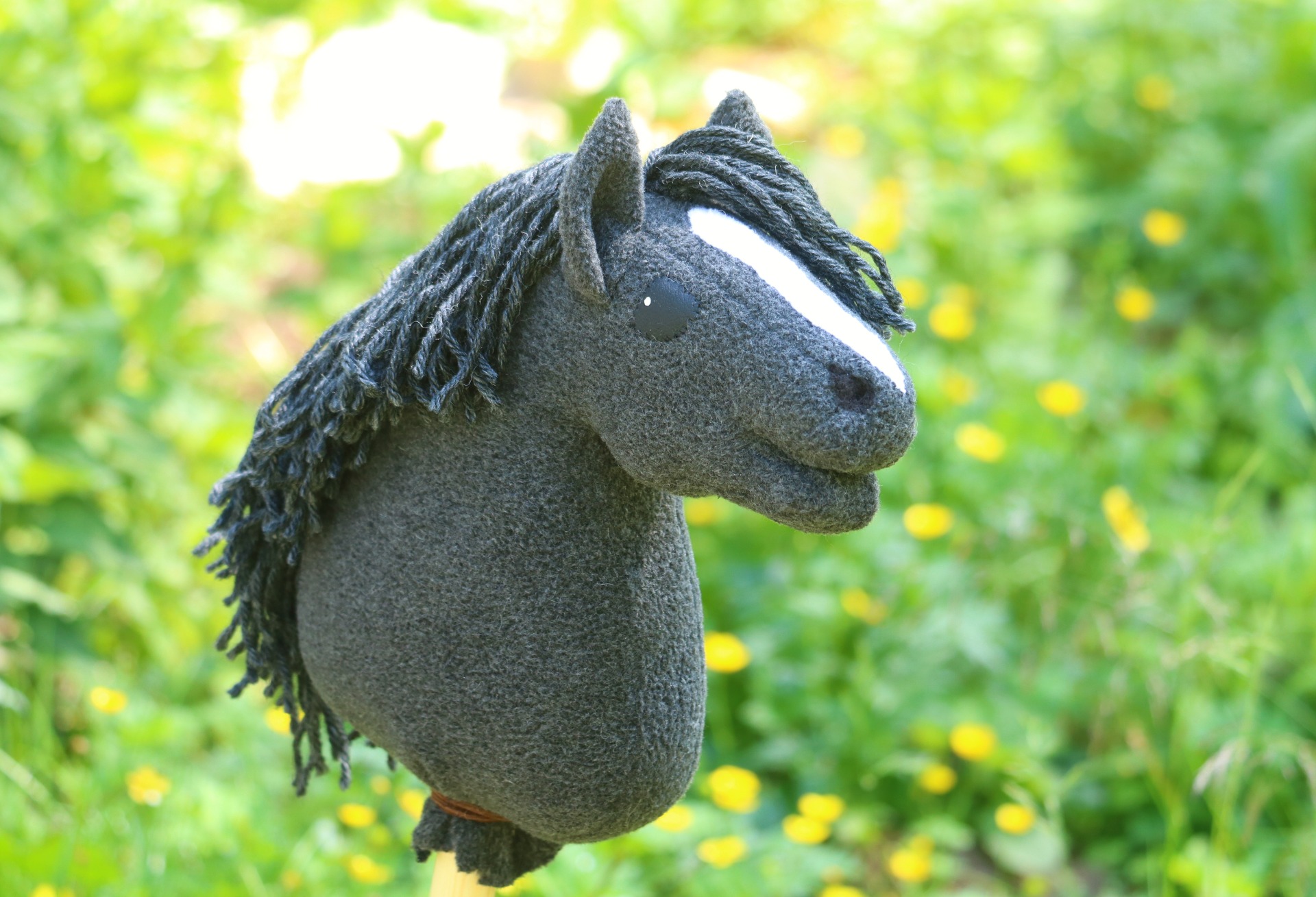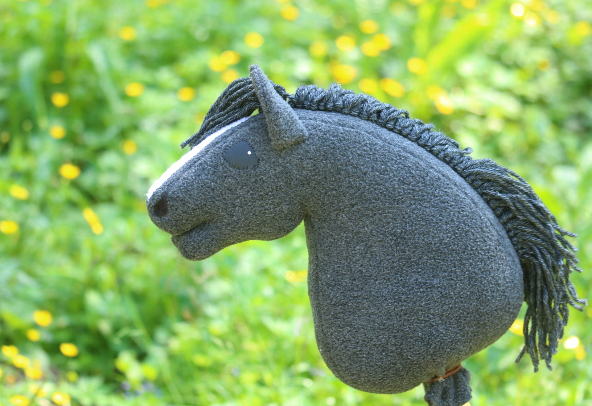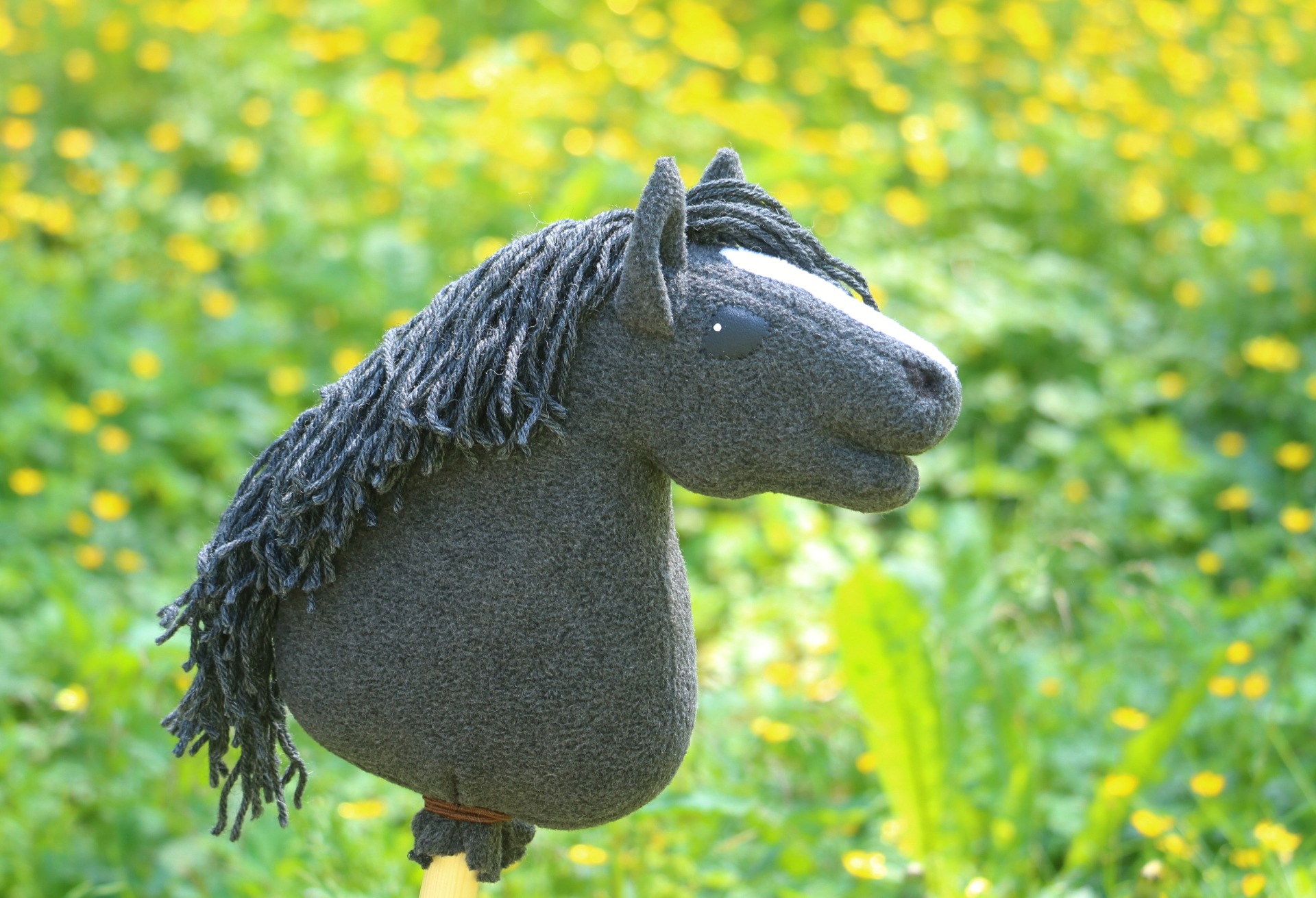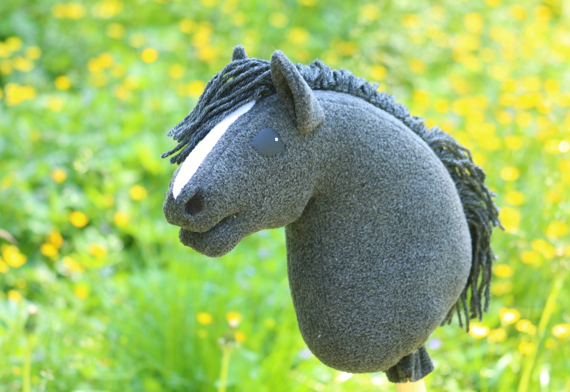 Tummanharmaasta fleecestä, piirrolla, tummanharmaa harja villasekoitelangasta.