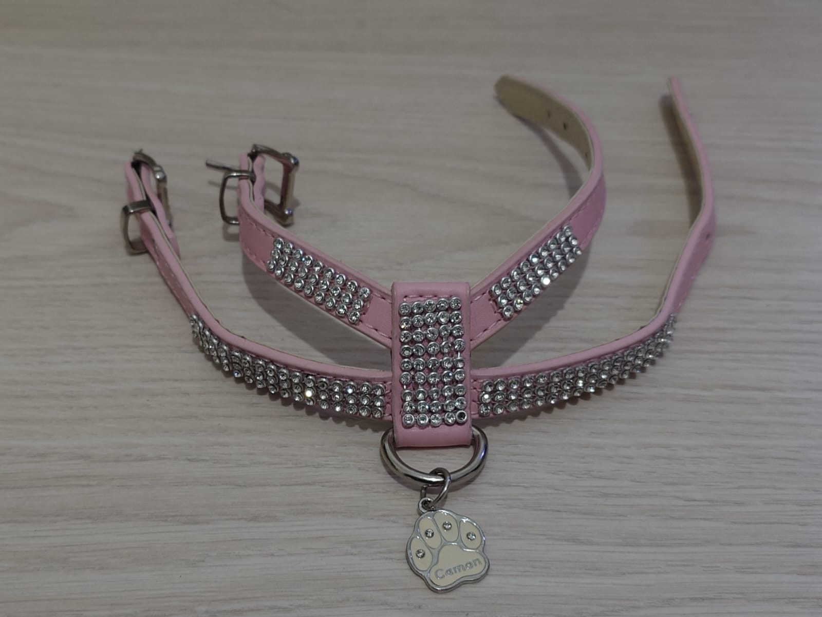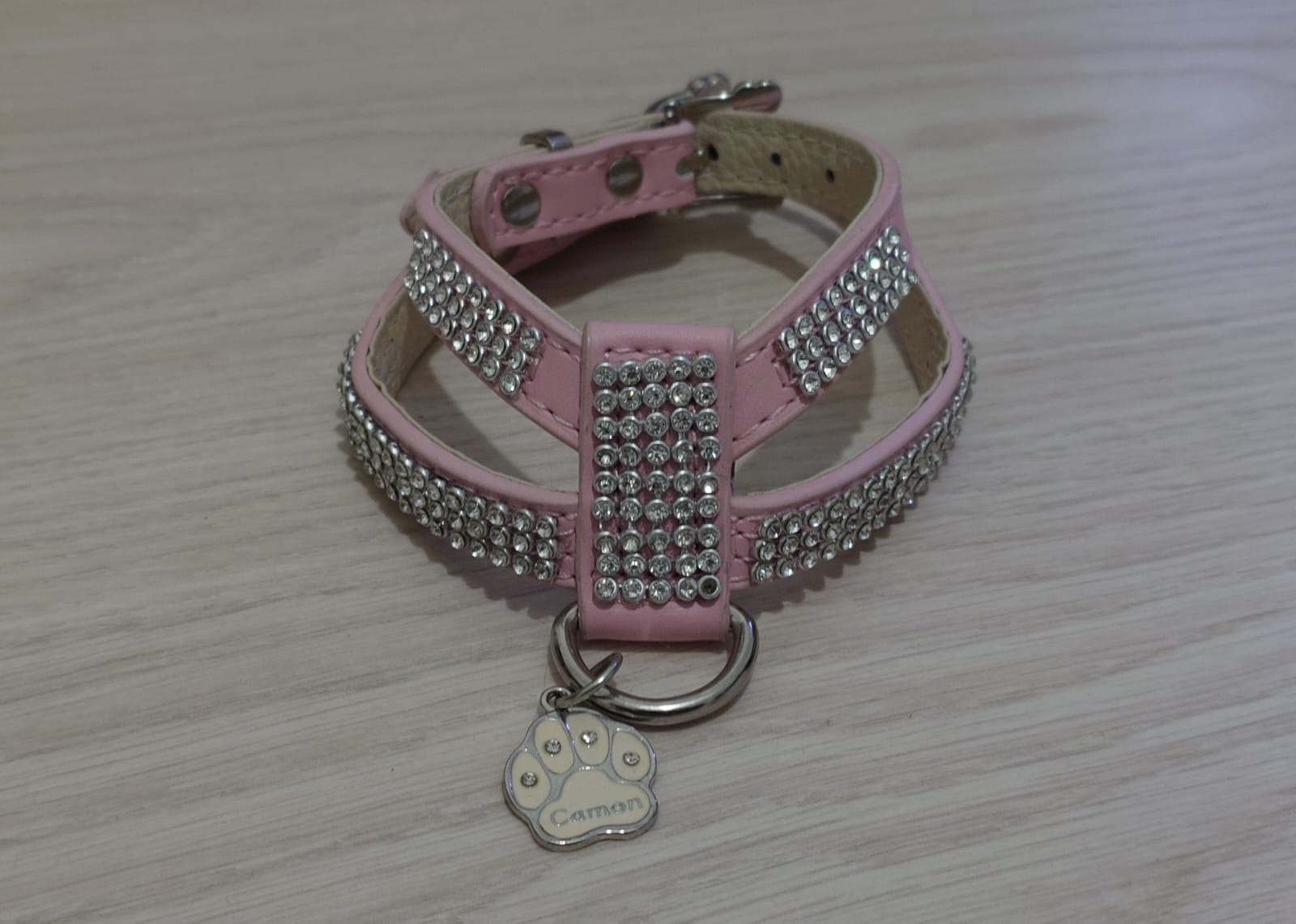 Vaaleanpunaiset Camon blingi kissan valjaat, nahkaa.