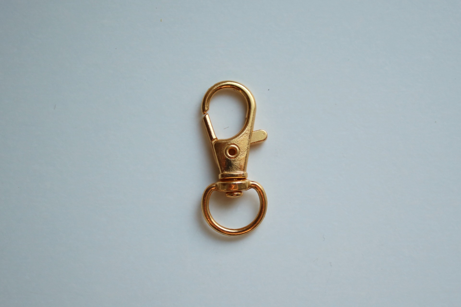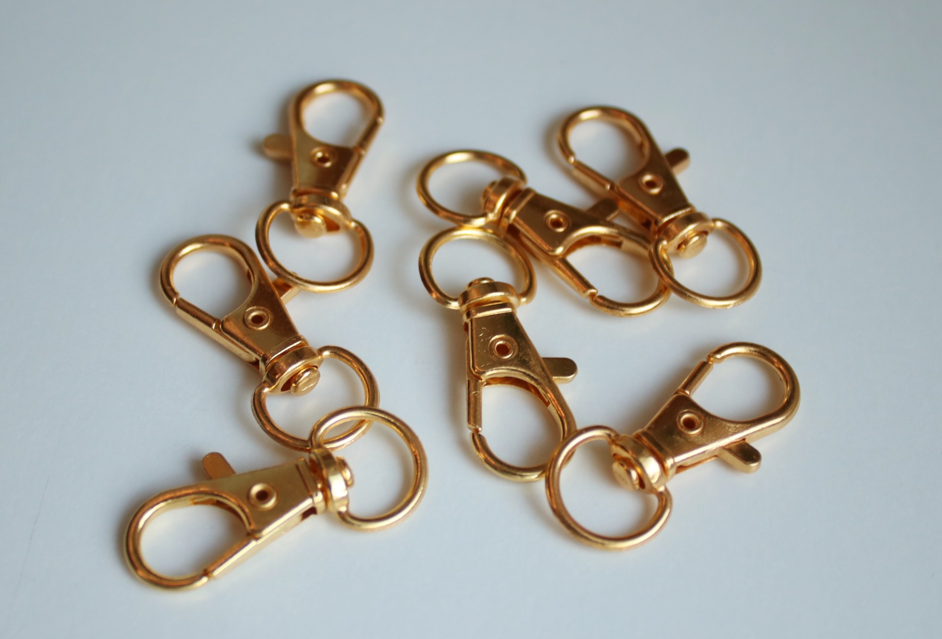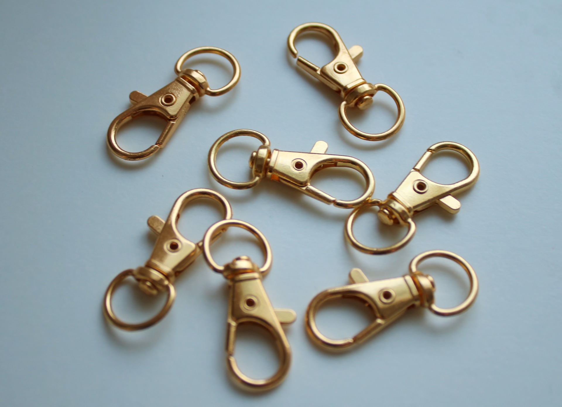 Small, gold colored metallic clasps for tack like lead ropes and halters.