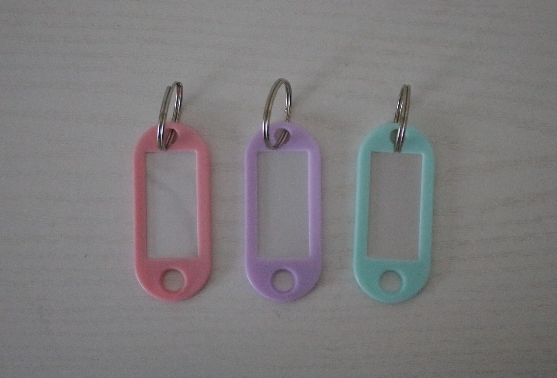Muovinen nimilaatta -avaimenperä. Avainrenkaalla, joka mahdollistaa nimilaatan kiinnittämisen varusteisiin.