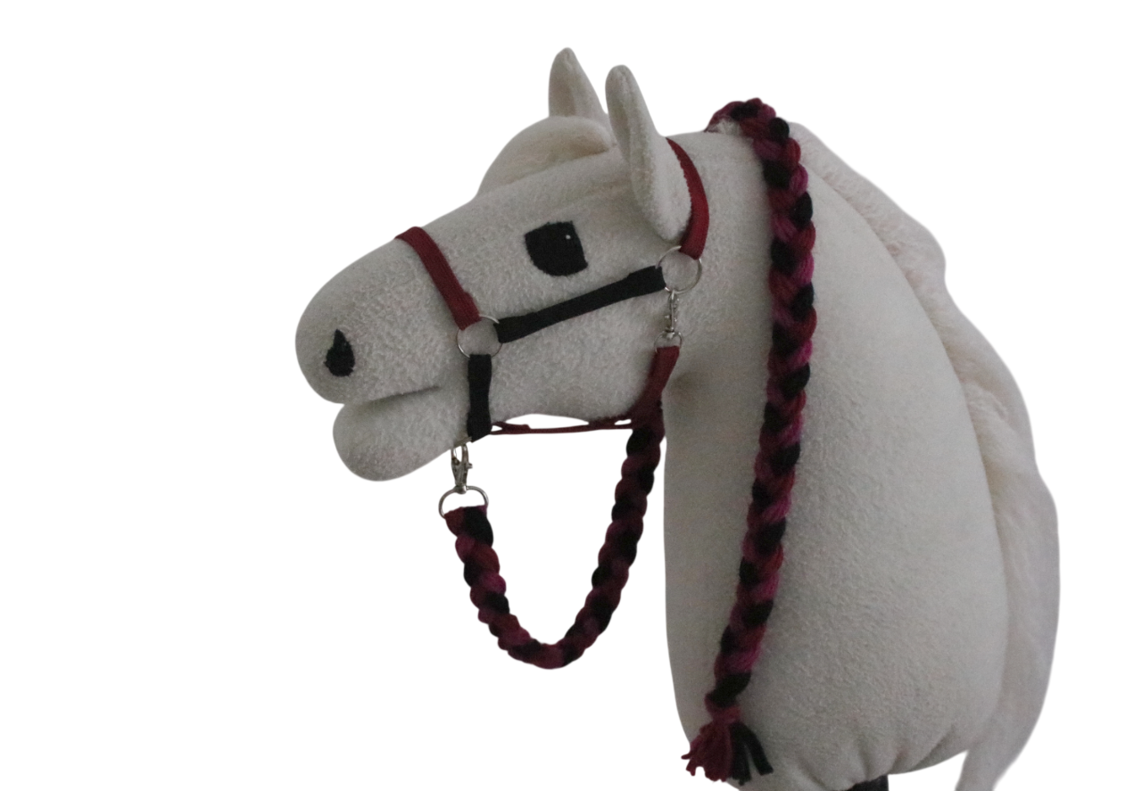 Riimun mitat noin: turpa 30 cm, poskihihnat 14 cm, niskahihna 22 cm, leukahihna 20 cm.