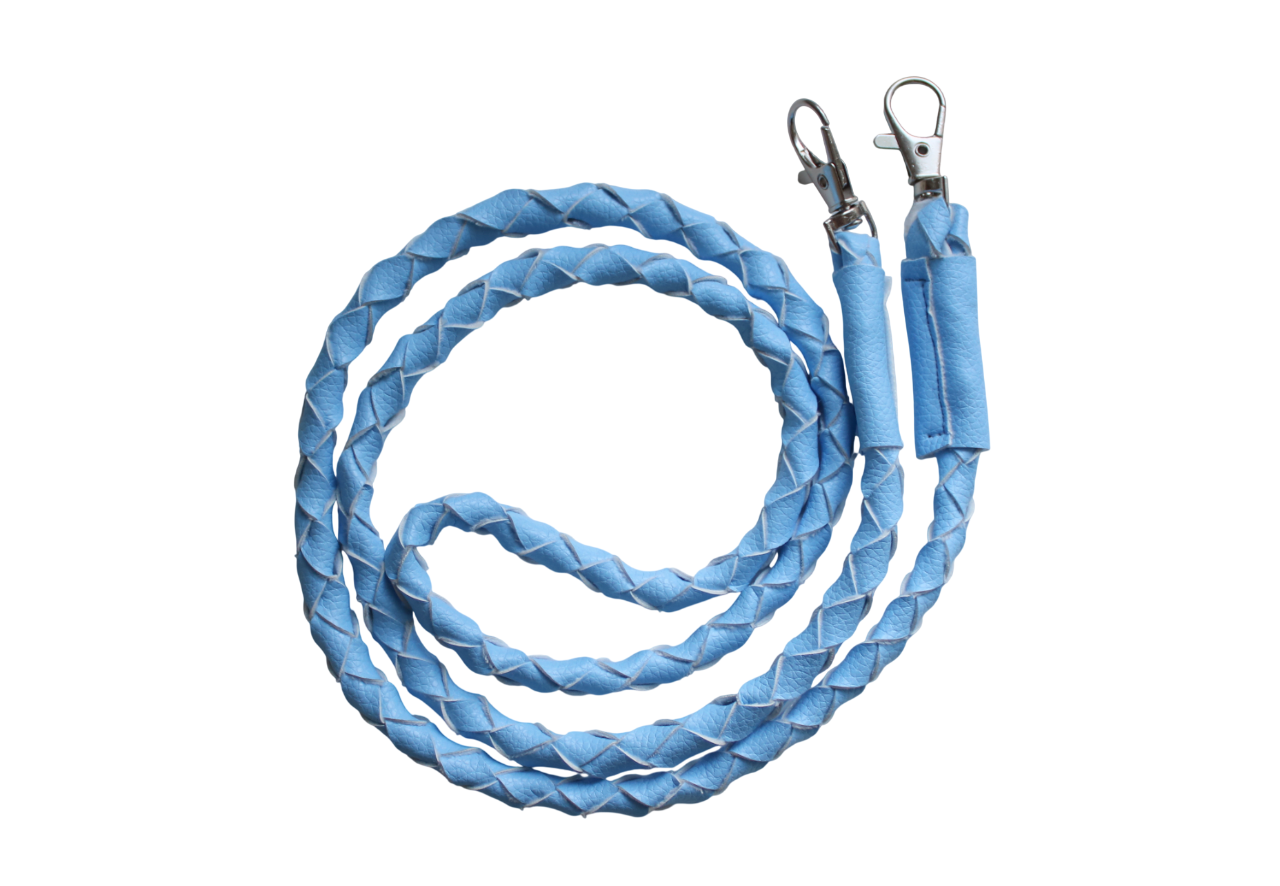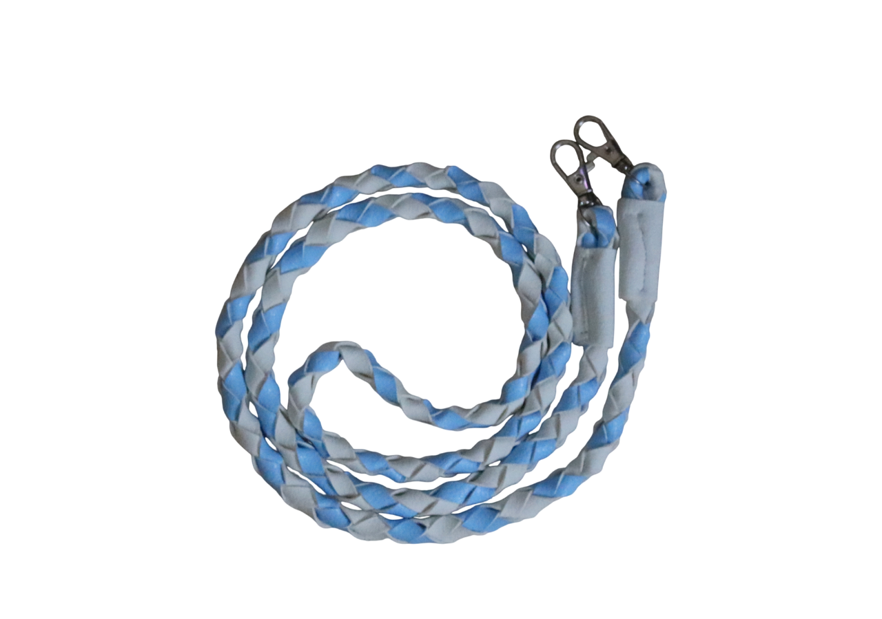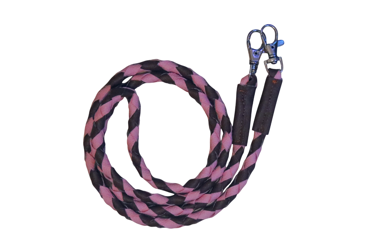 Four strand-braided faux leather reins, either with a diamond or stripe pattern.