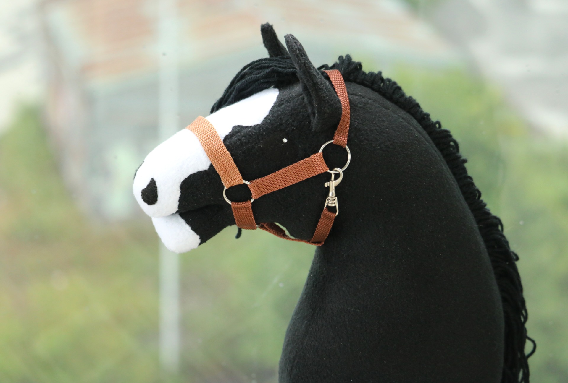 Mitat noin: turpa 30 cm, poskihihnat 14 cm, niskahihna 22 cm, leukahihna 20 cm. Säädettävässä riimussa on niskassa ja turvalla soljet, joilla hihnoja voi säätää noin +/-5 cm.