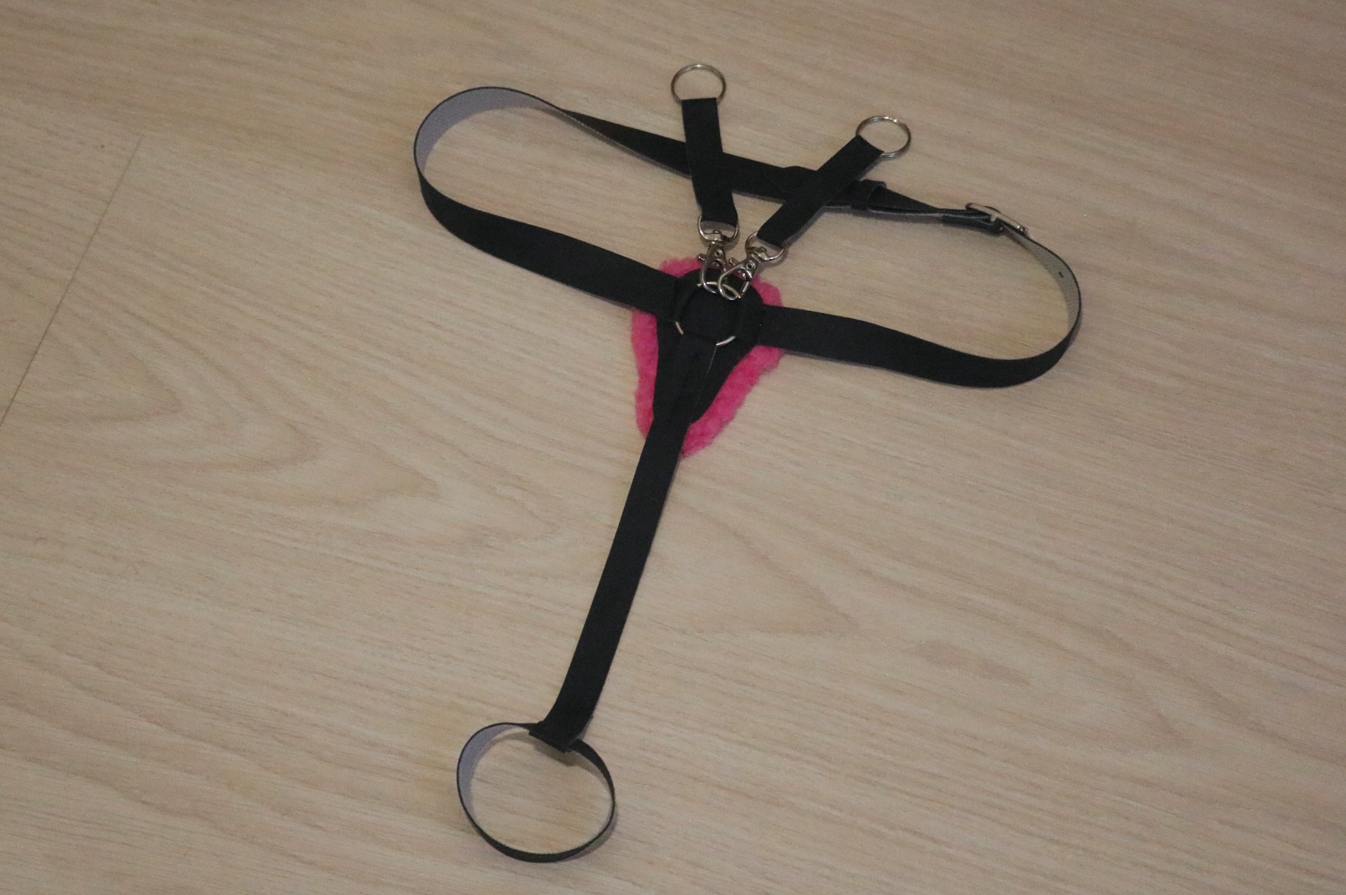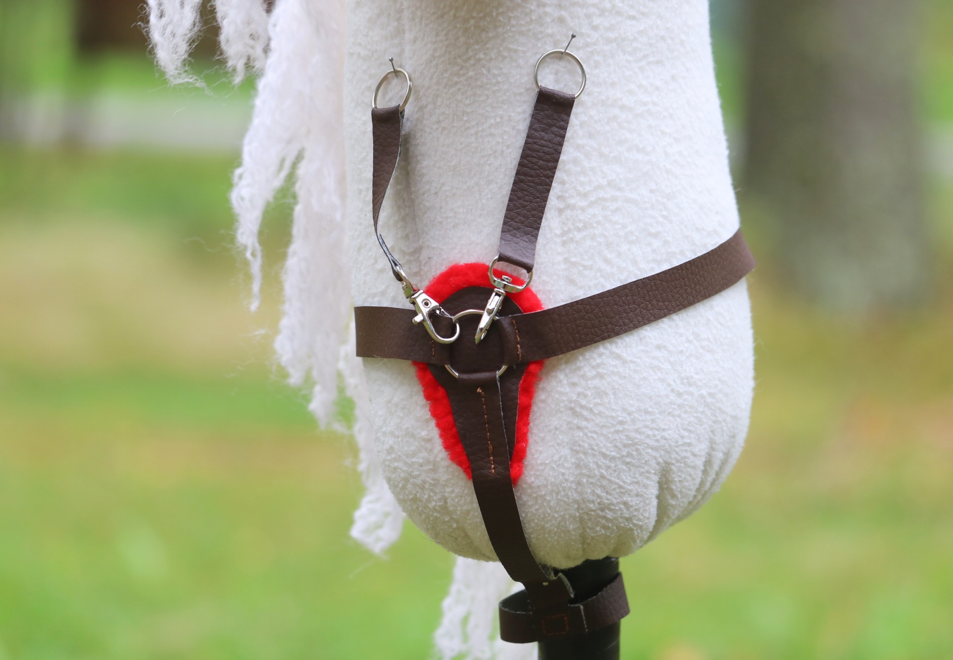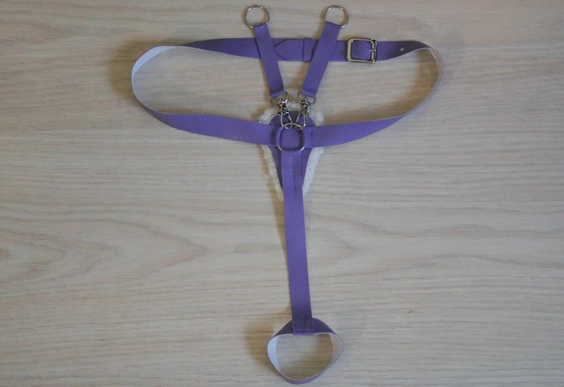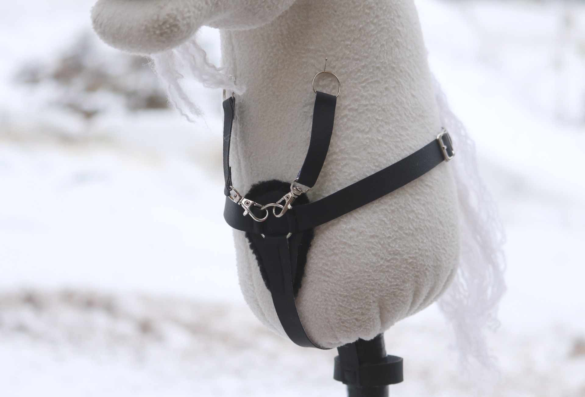 Rintaremmimartingaali irrotettavalla martingaaliosalla. Keskiosassa pehmuste. Kaulan ympärys on avattavissa ja säädettävissä soljella.