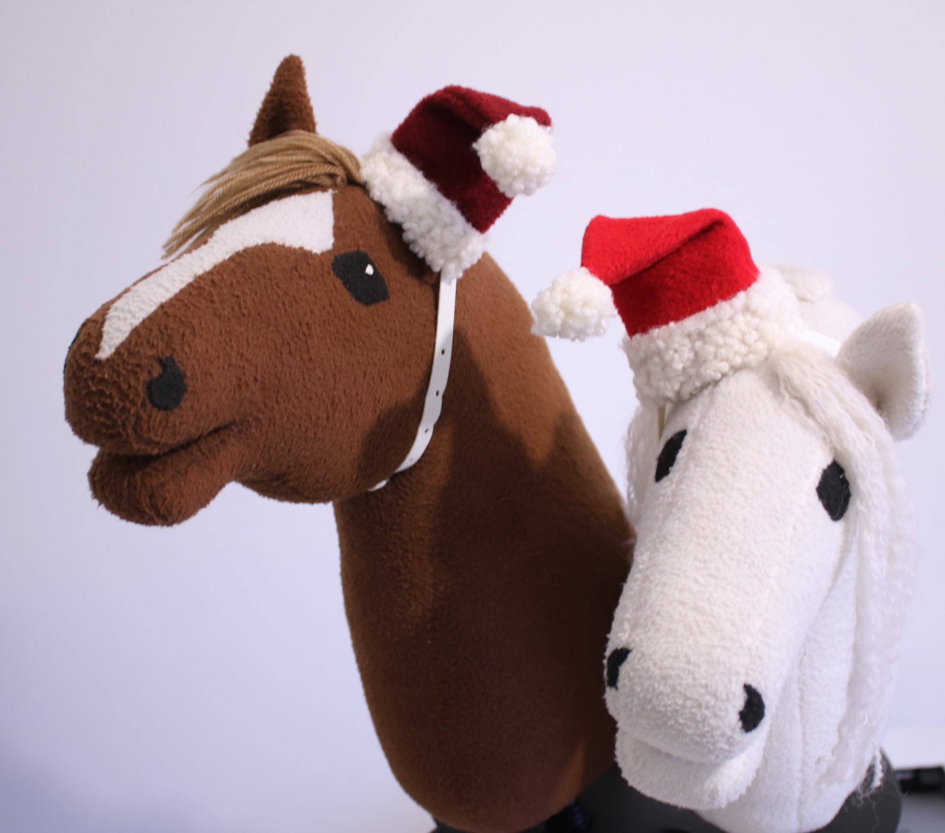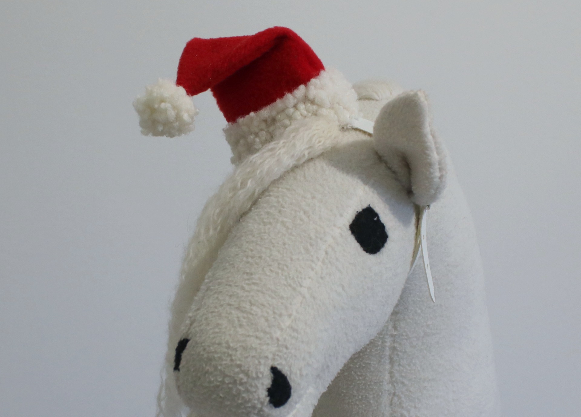 Yhden korvan tonttulakki keppihevoselle.