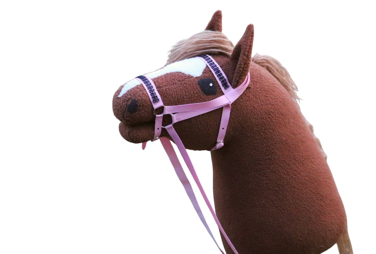 Hannoverilaiset suitset, joissa on yksi turpahihna kuolaimen edessä, keinonahasta. Värinä vaaleanpunainen, mustat koristeet.