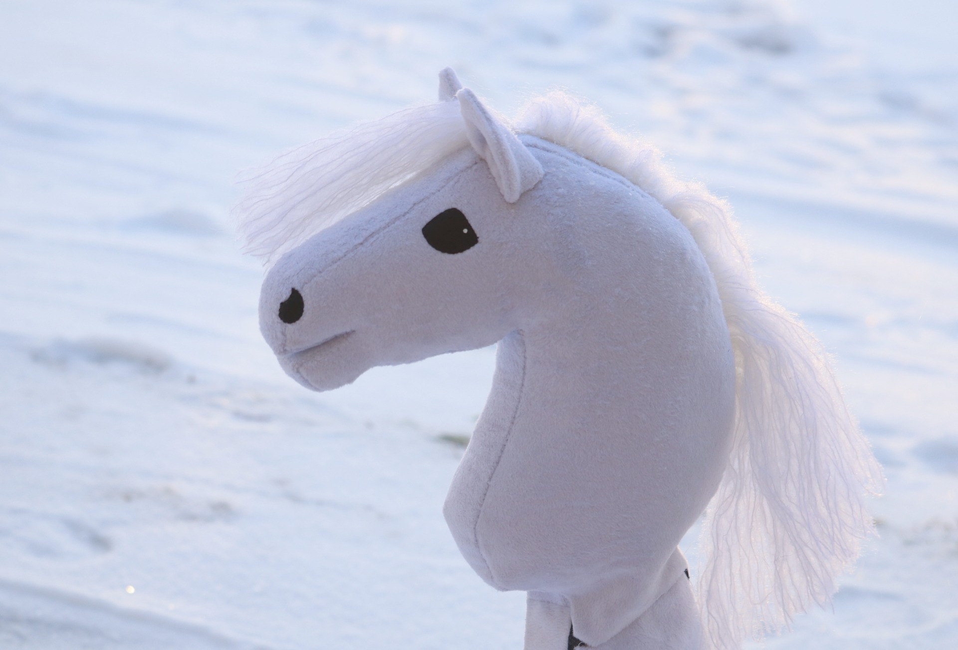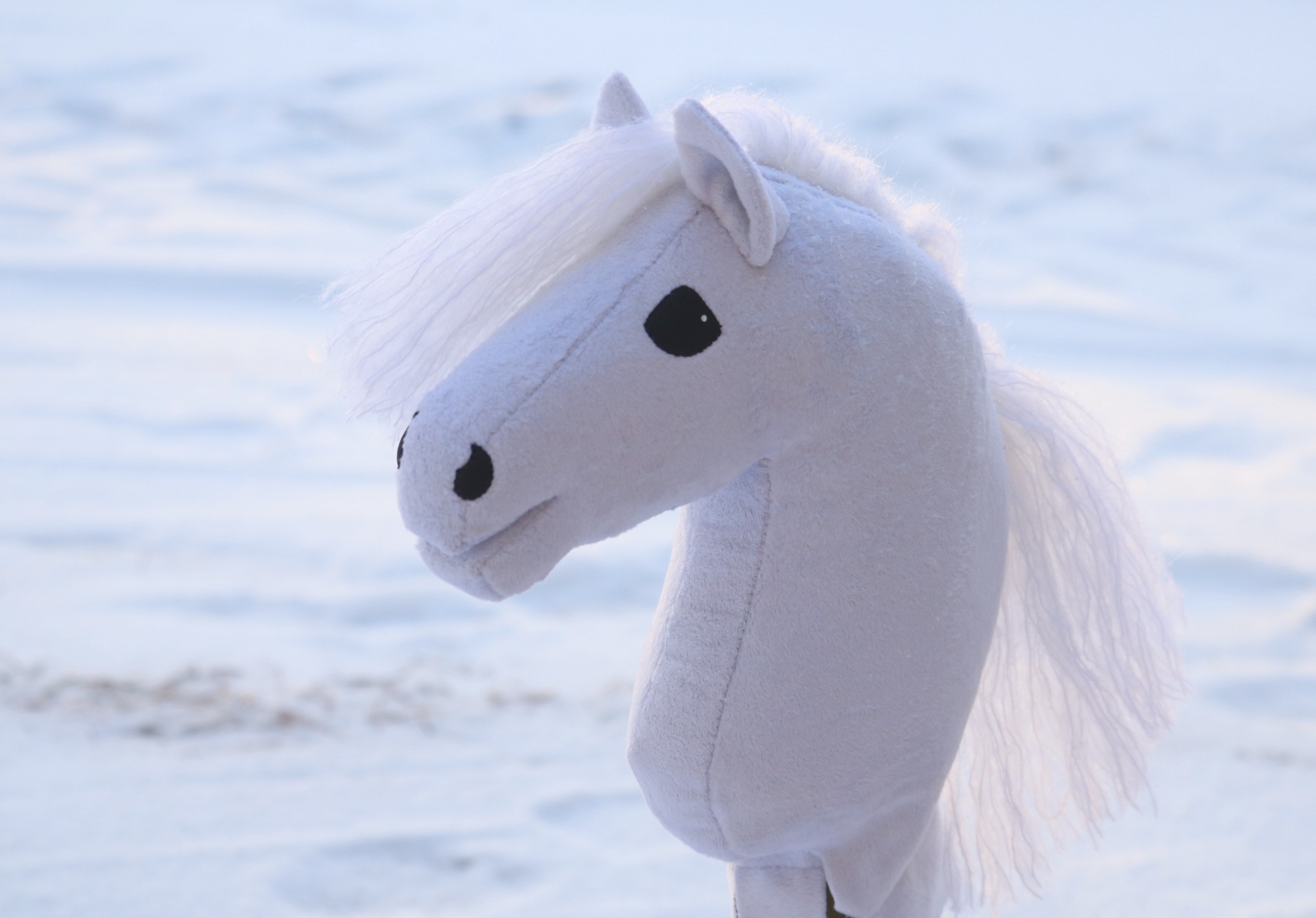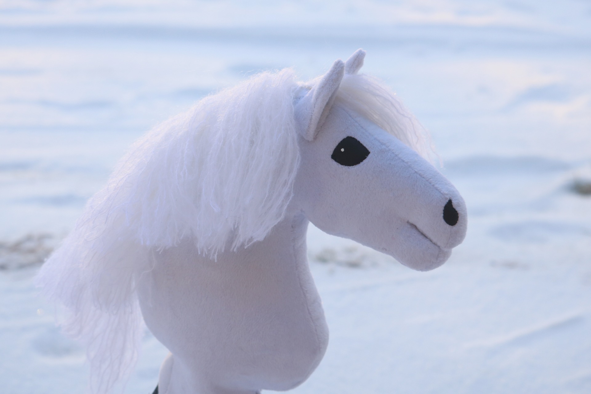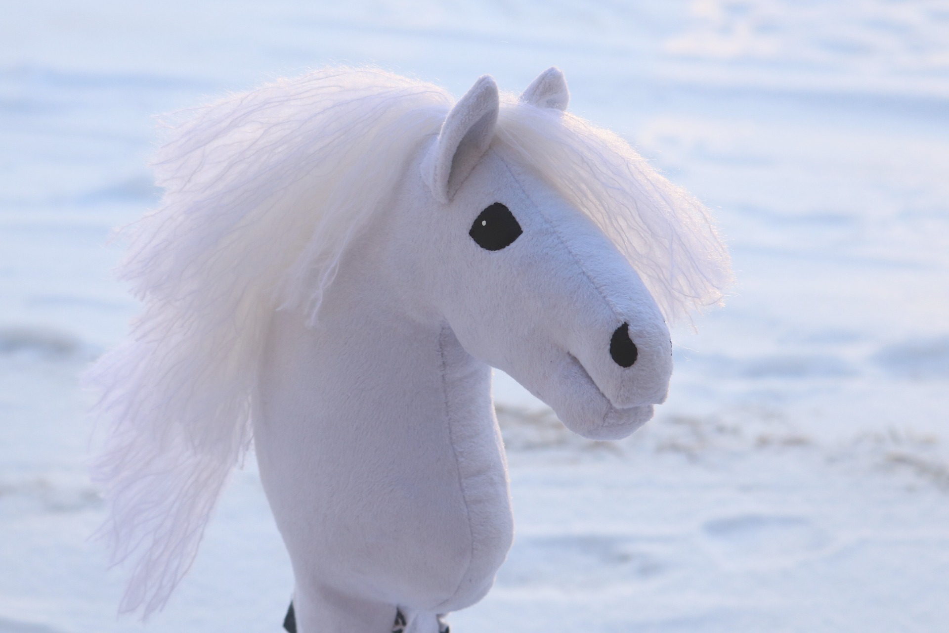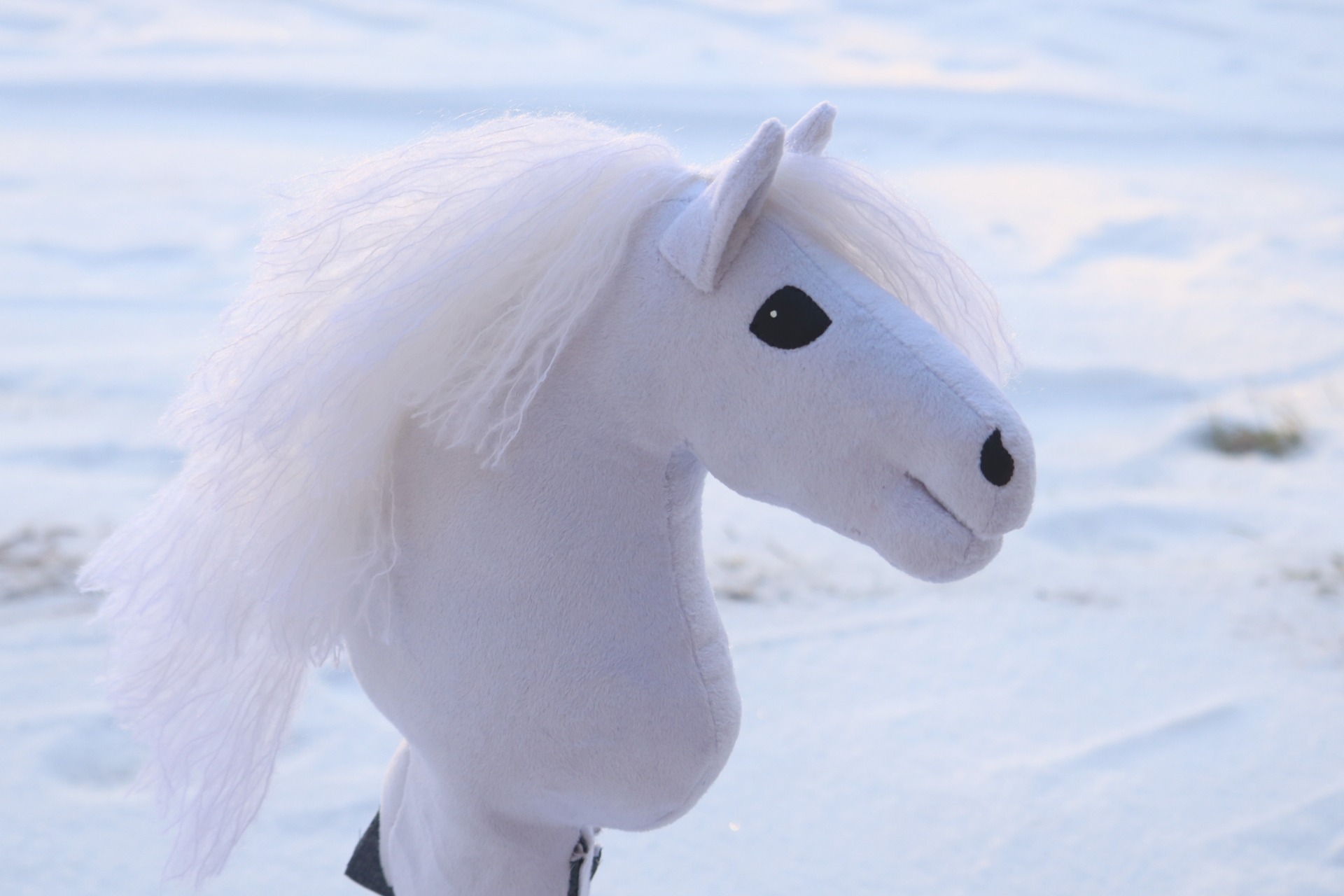 Ponikokoinen (yli A4) keppihevonen. Tehty loppuun keskeneräisestä keppihevosesta, kaava ja pohjan ompelu (muutoksia lukuunottamatta) Ponitalli Bamse.