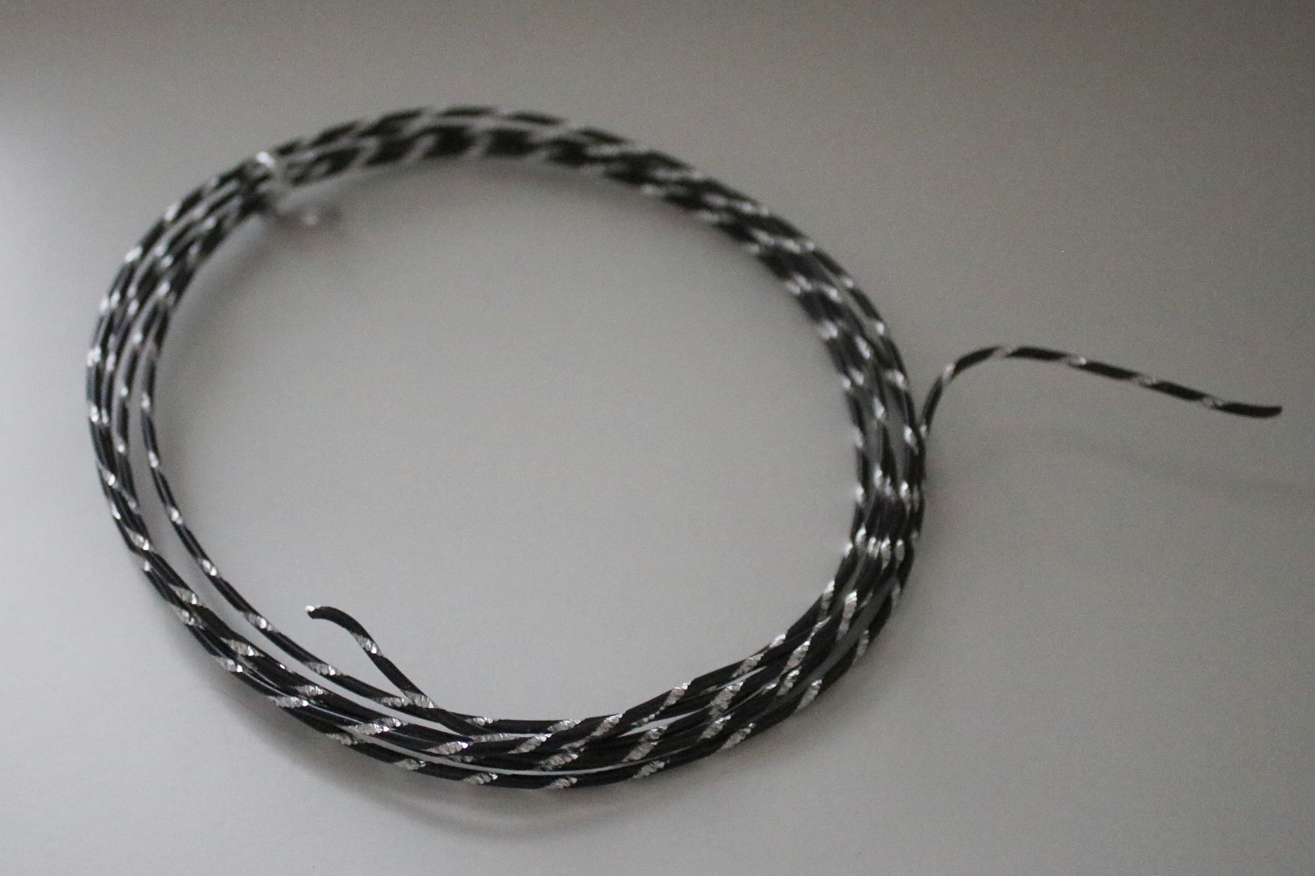 Wire, 3 mm thick. Easily bendable, but firm. About 1 meter.